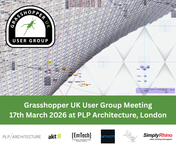 🗞️ Simply Rhino 宣布即将在伦敦 PLP 建筑事务所举办 Grasshopper 英国用户组会议,时间为 3 月 17 日星期二。